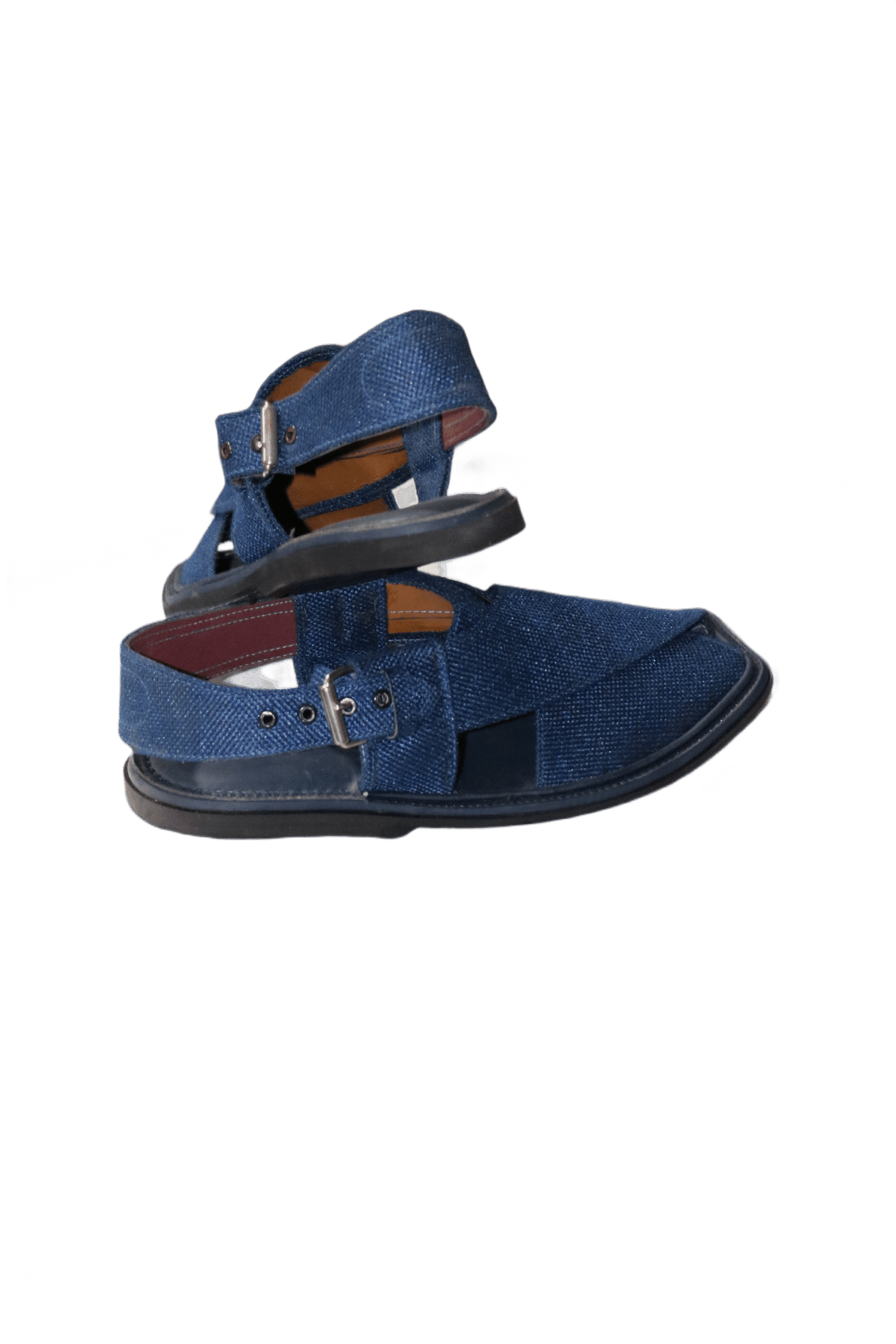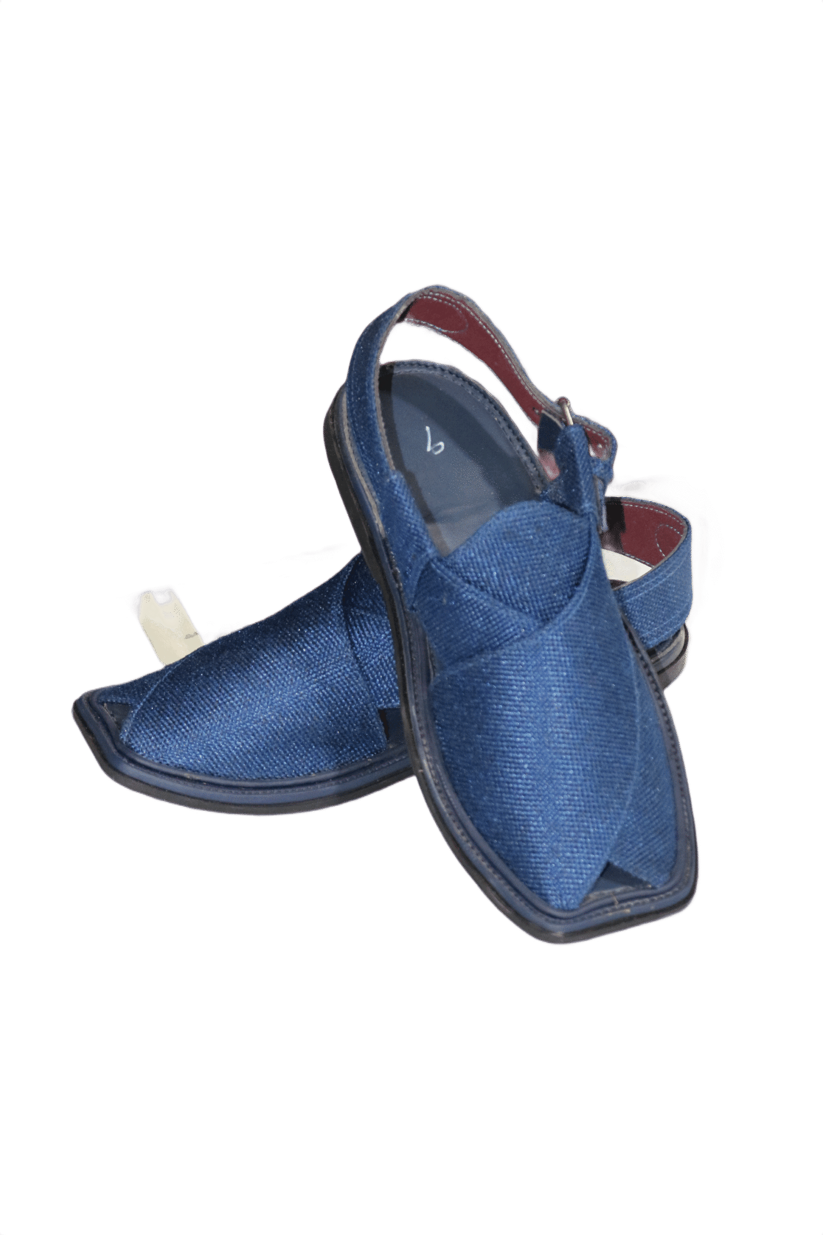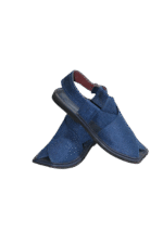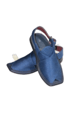 Showcase your identity and style with this Blue Fabric Round T-Shaped Handmade Peshawari Chappal — not just footwear, but a heritage of elegance.